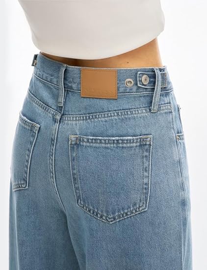 Adjustable Wasit Baggy Jeans with Snap-Button Waistband