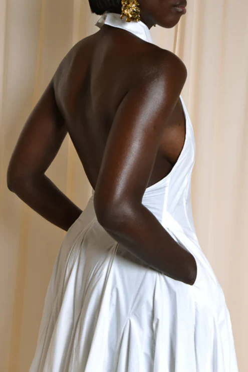 Backless Midi Dress In White