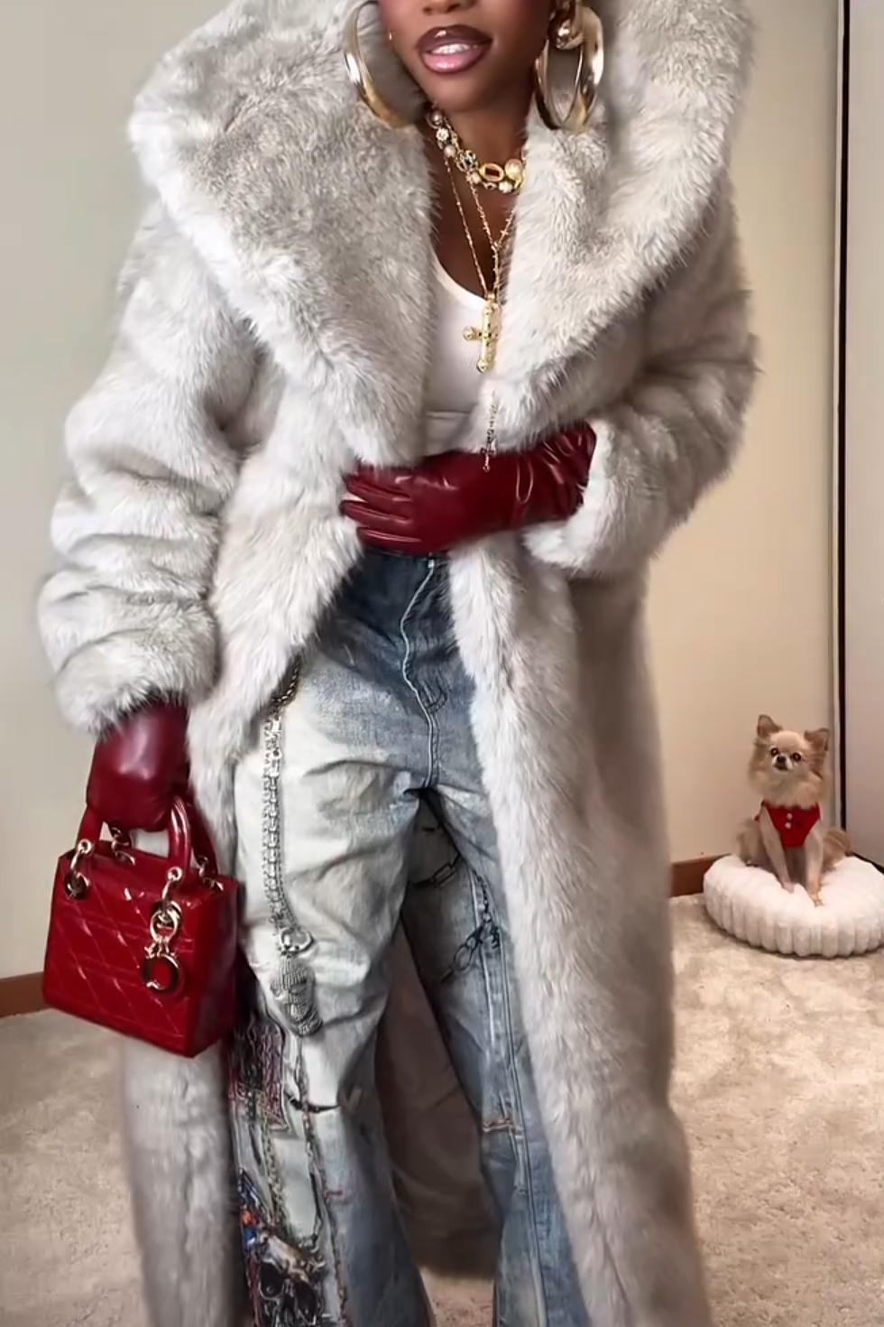 Bella Donna Two Tone Long Faux Fur Coat