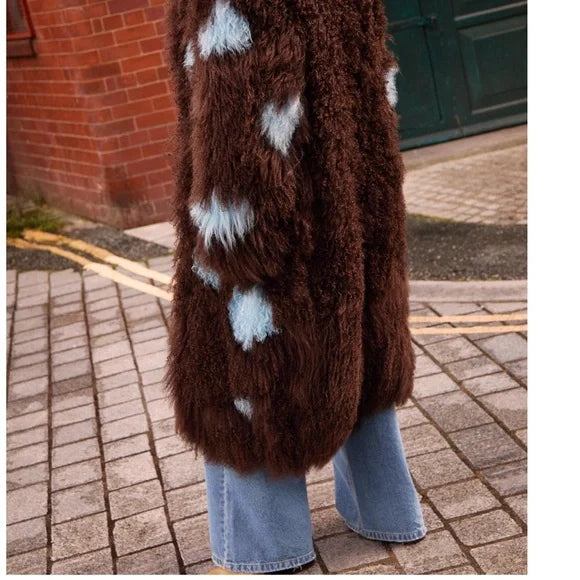Brown and Blue Women's Fur Coat
