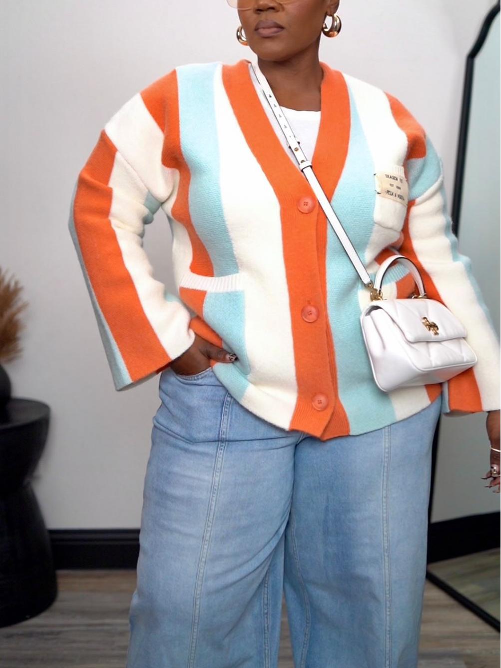 Cable Knitted Color Block Boho Striped Sweater Cardigans