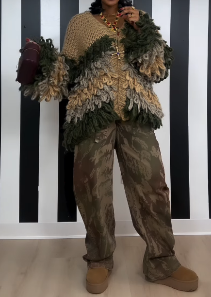 Contrast Knit Loose Sweater