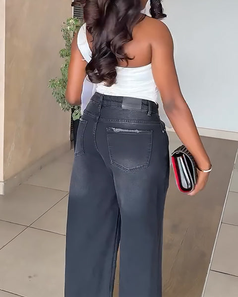 Elegant White Floral Ruffle One-Shoulder Top