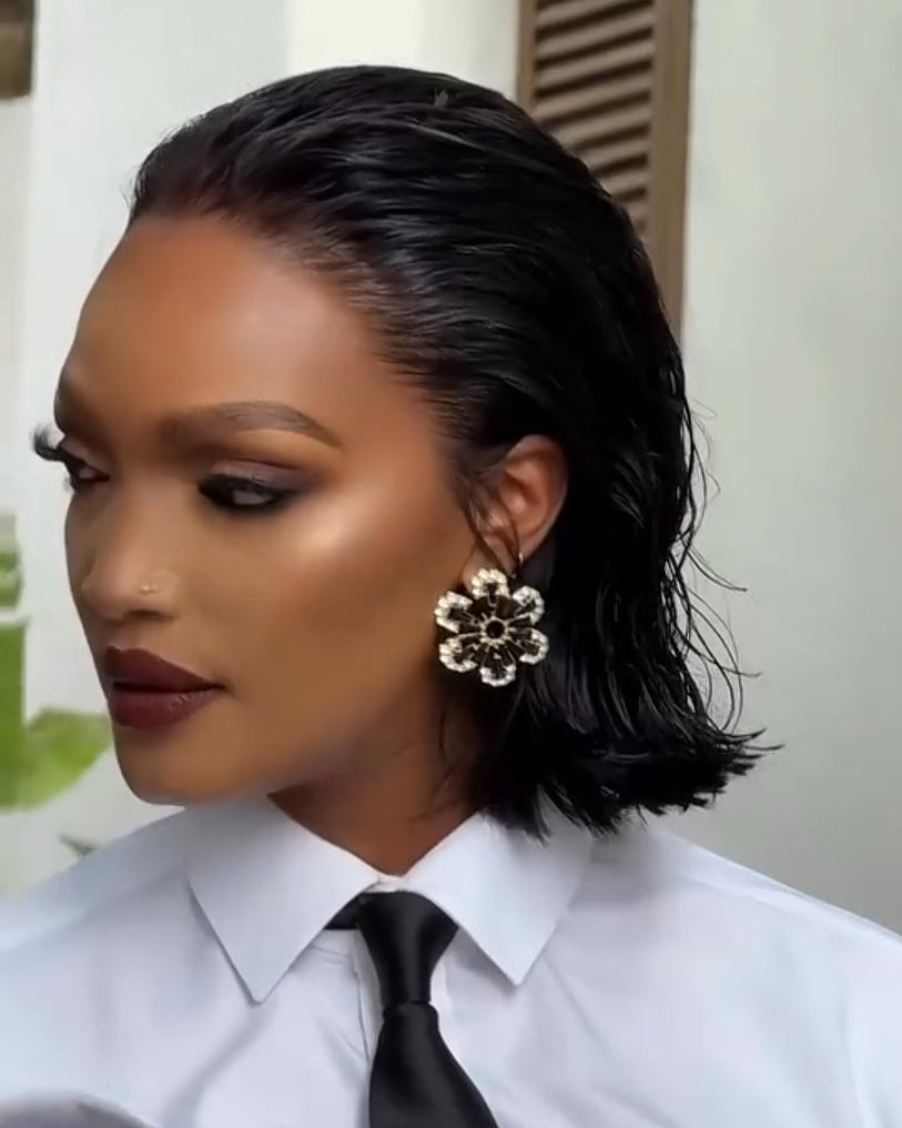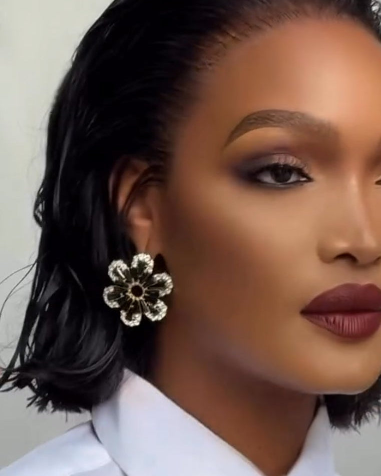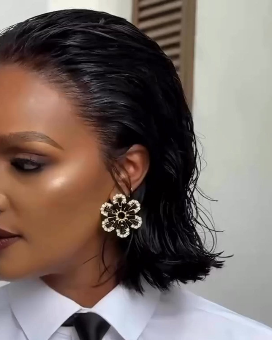Flower Shaped 3D Water Drop Black Stud Earrings