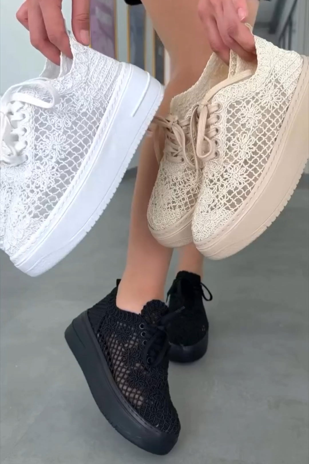 Hollow Lace Woven Thick-Soled Casual Shoes
