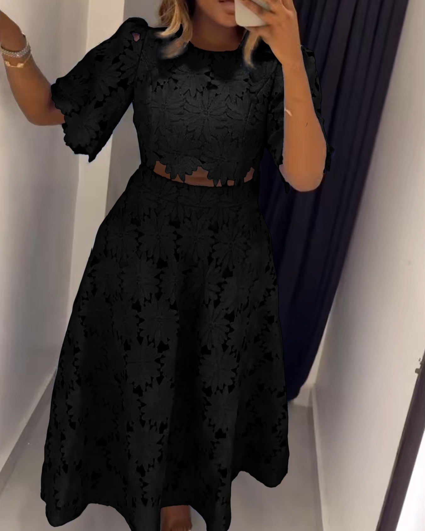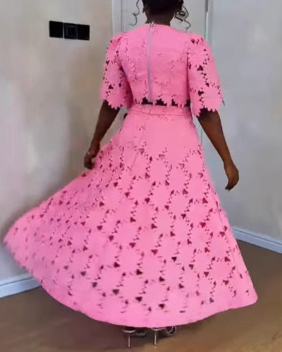 Hollow Top Fashion Casual Suit Two Piece Set