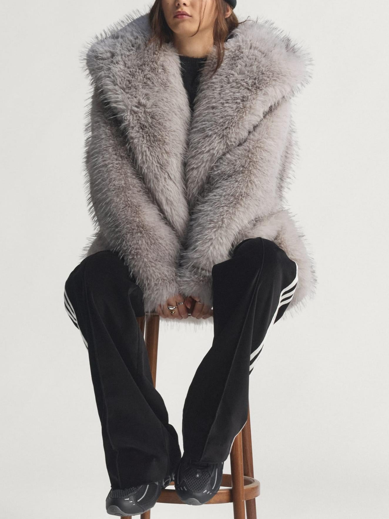 Hooded Relaxed-Fit Faux Fur Jacket