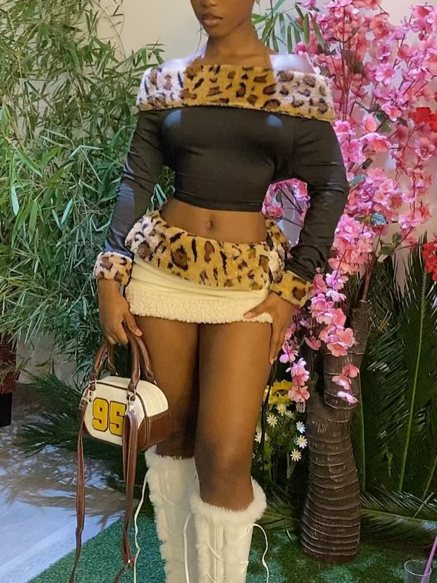 Leopard-Print Neck Slim-Fit Shoulder Top