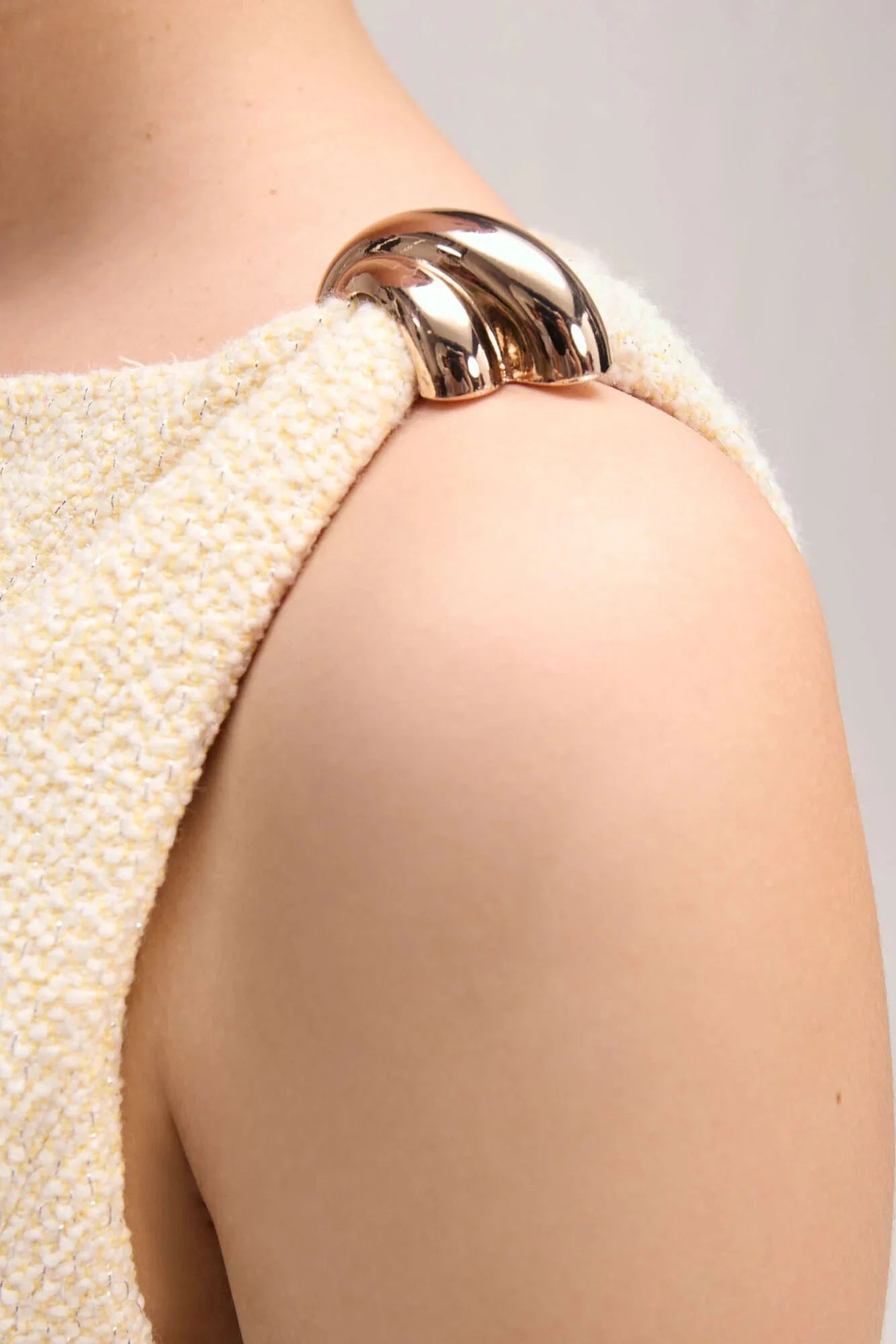 Gold jewellery detail on shoulder