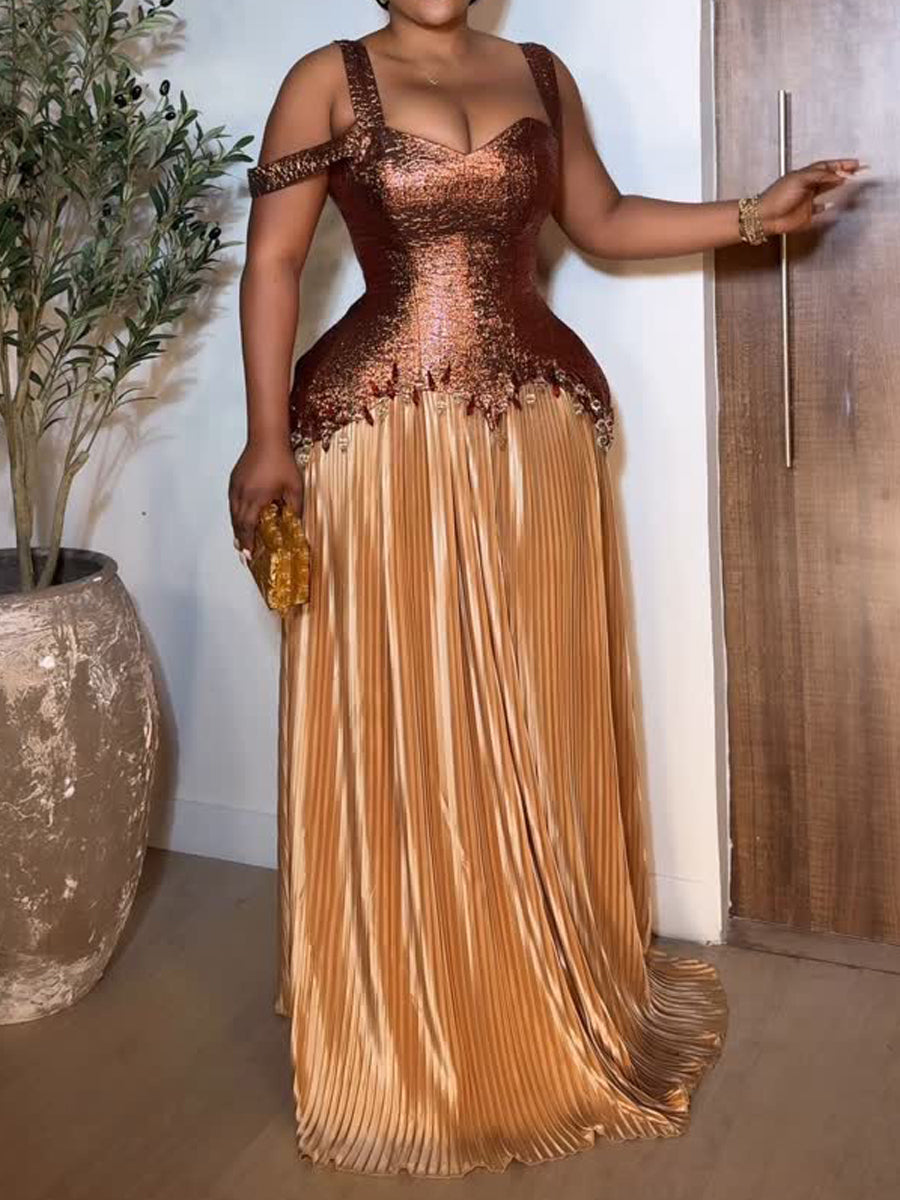 Patchwork Pleated Sling Dress