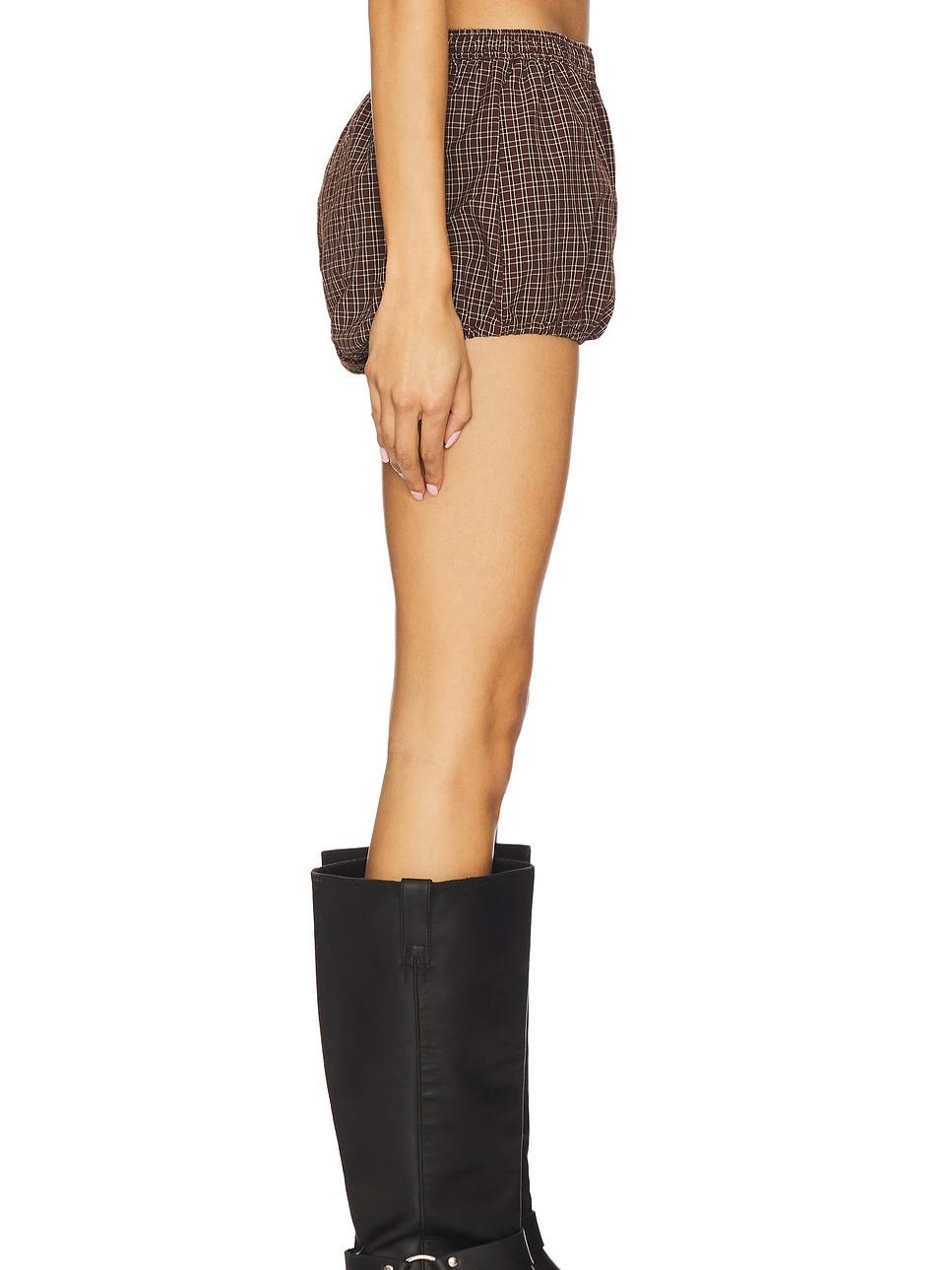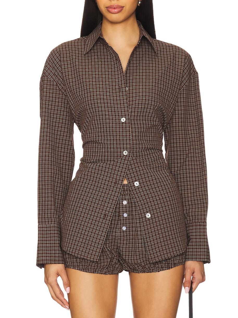 Plaid Drawstring Back Shirt & Puff Hem Shorts Set