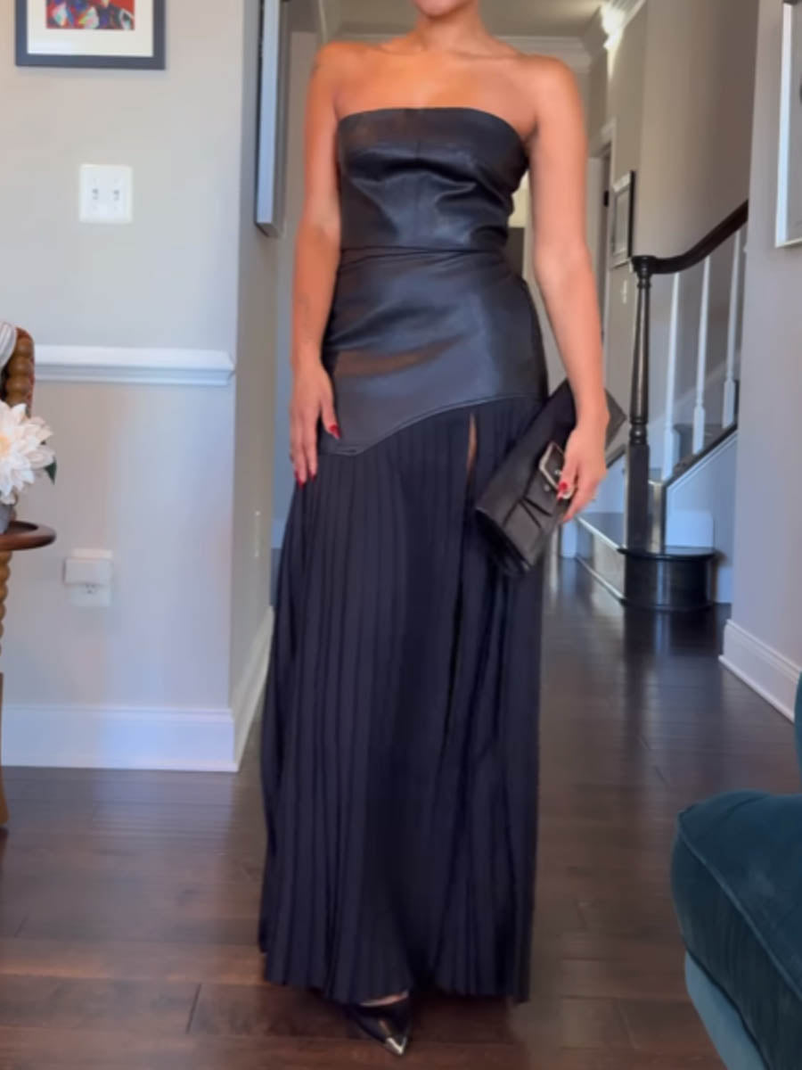 PU Patchwork Pleated Two Pieces Dress