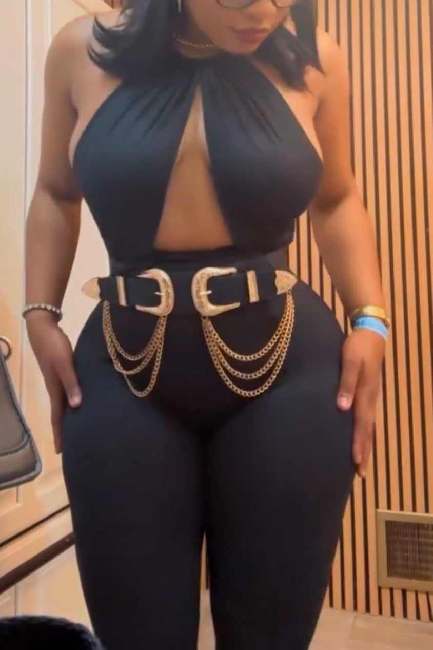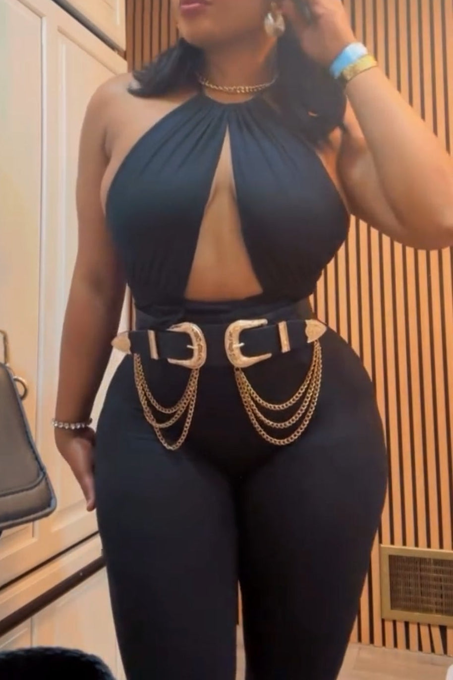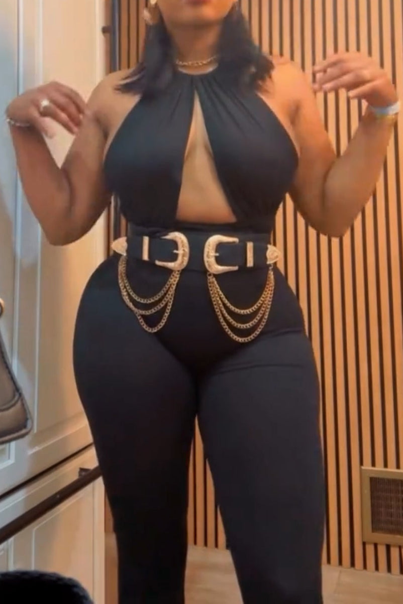 Sculpted Allure Halter Jumpsuit – Midnight Black