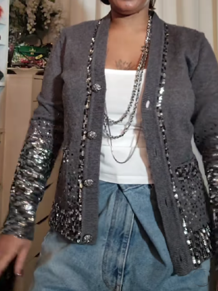 Sequin Trim Knit Cardigan