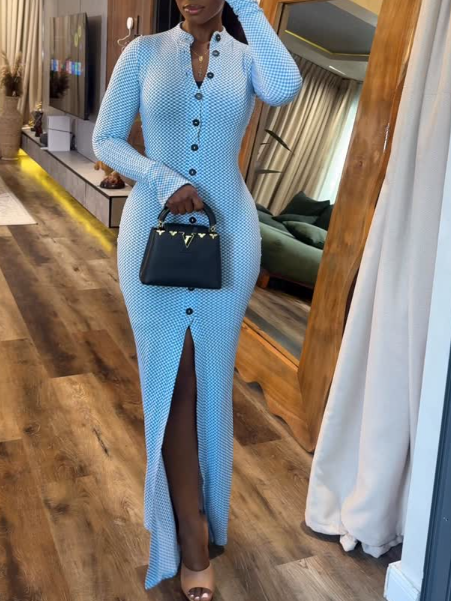 Slim-Fit Button-Front Split Dress