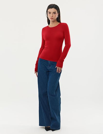Women's Long Sleeve Shirts Merino Wool Blend Crew Neck Tops