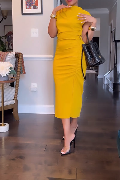 Yellow Skinny High-Neck Dress